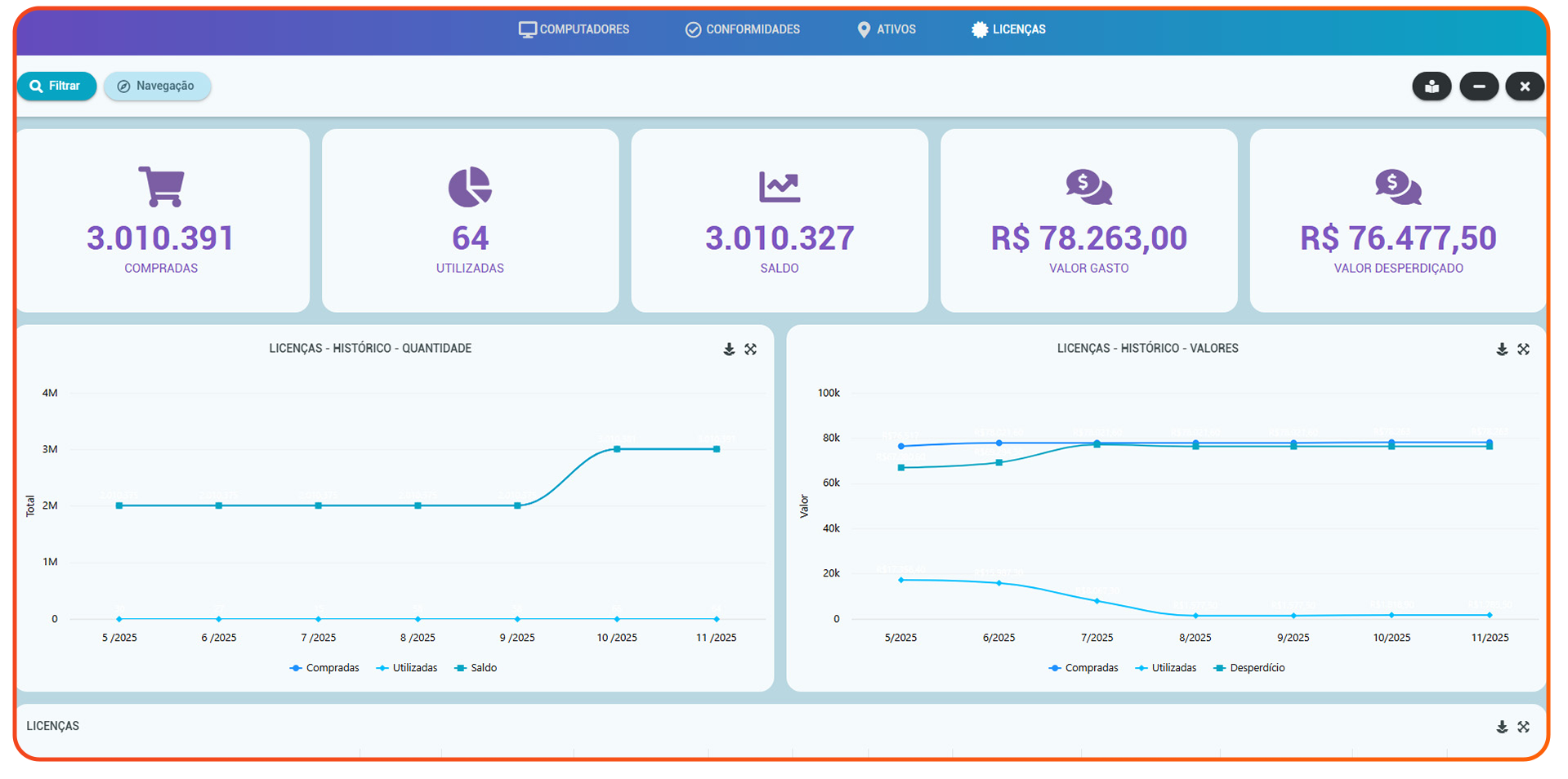 Reduza custos com licenciamento de software e automatize o gerenciamento de licenças com inteligência.